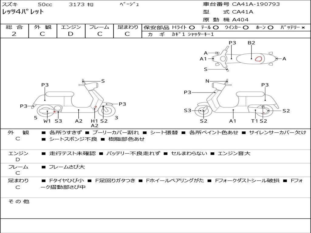 | Номер рамы / VIN | CA41A-190793 |