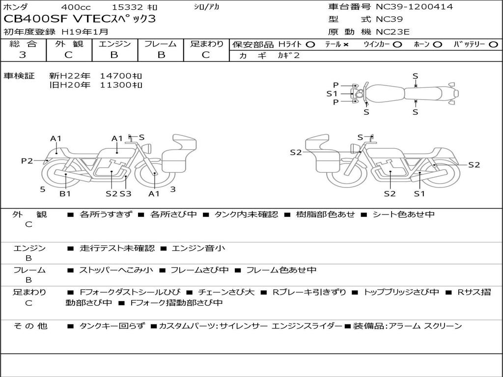 | Номер рамы / VIN | NC39-1200414 |