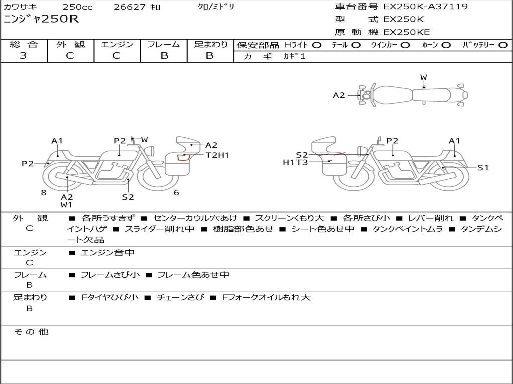 | Номер рамы / VIN | EX250K-A37119 |