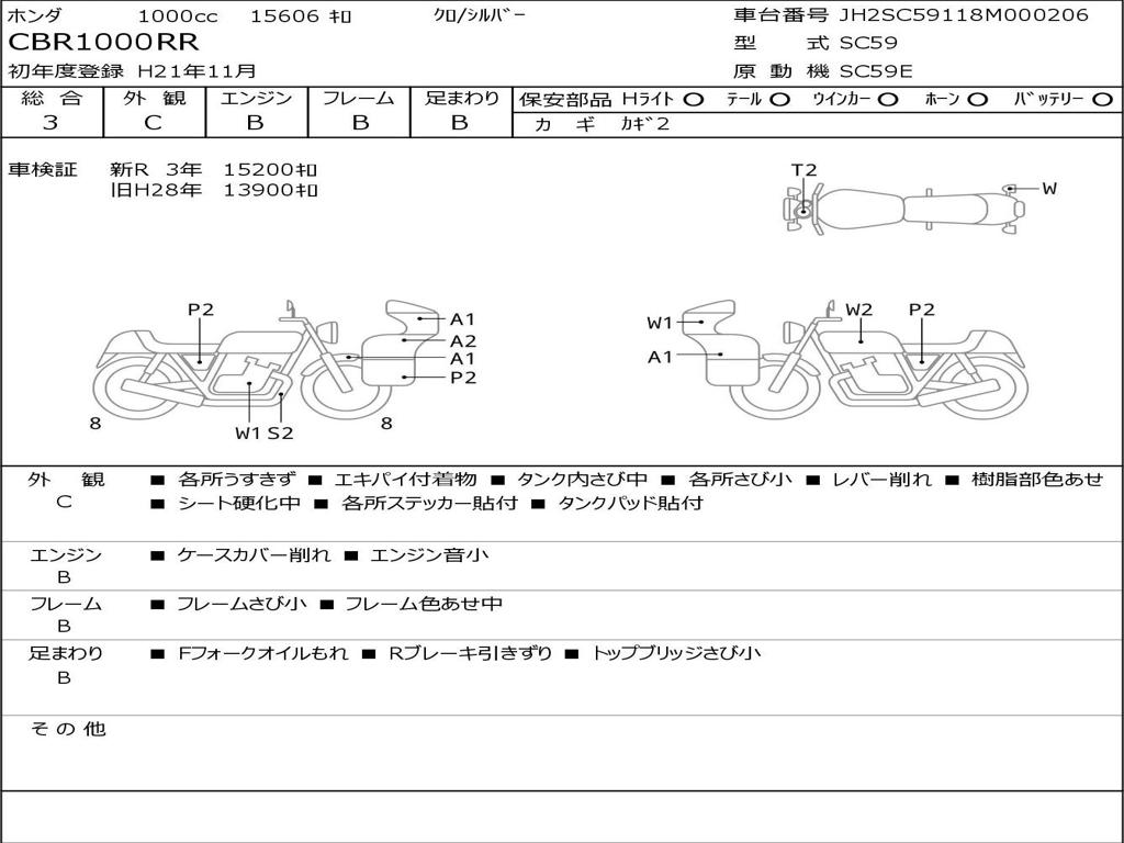 | Номер рамы / VIN | JH2SC59118M000206 |