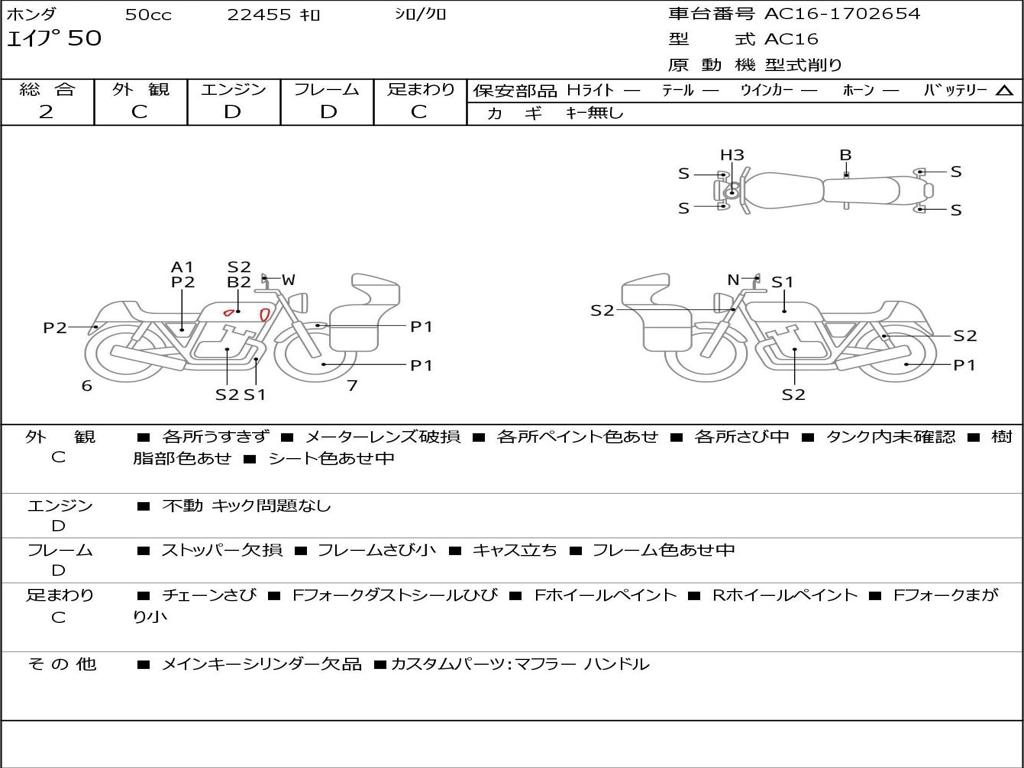 | Номер рамы / VIN | AC16-1702654 |