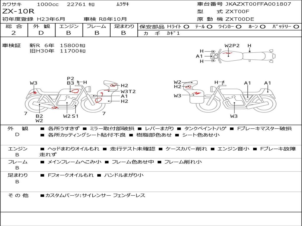 | Номер рамы / VIN | JKAZXT00FFA001807 |