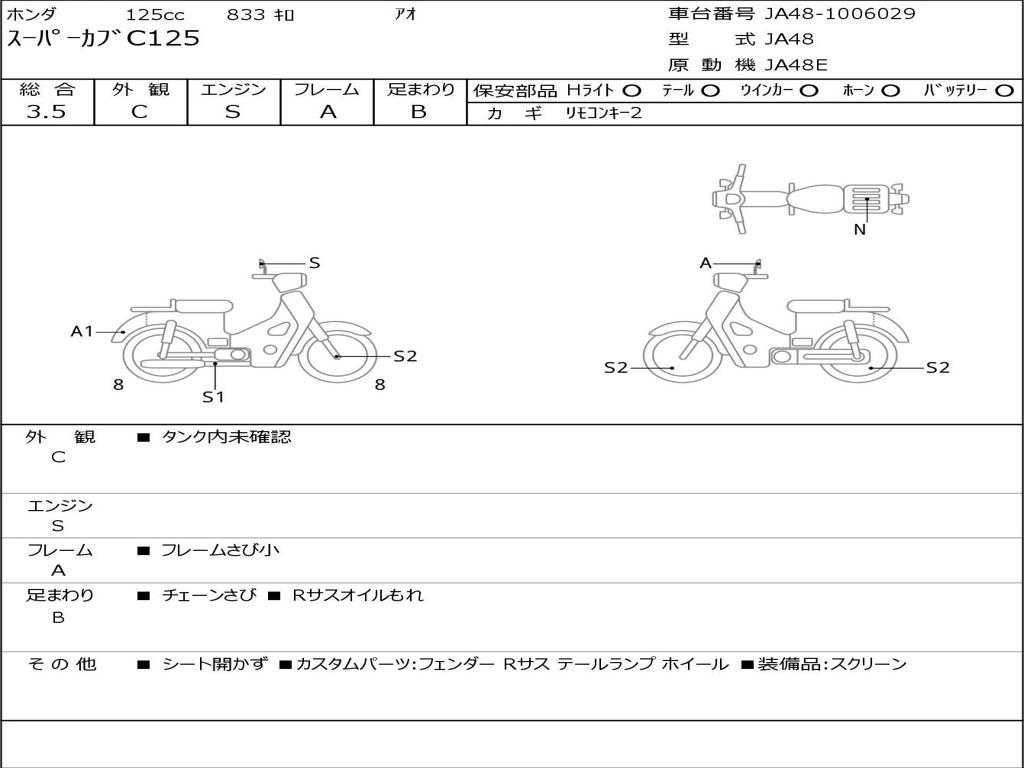 | Номер рамы / VIN | JA48-1006029 |