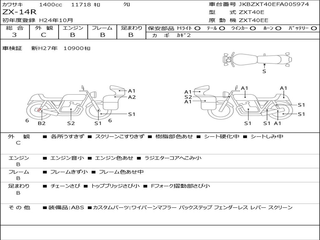 | Номер рамы / VIN | JKBZXT40EFA005974 |