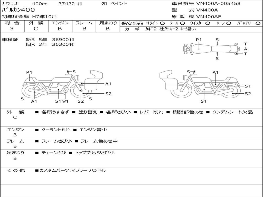 | Номер рамы / VIN | VN400A-005458 |