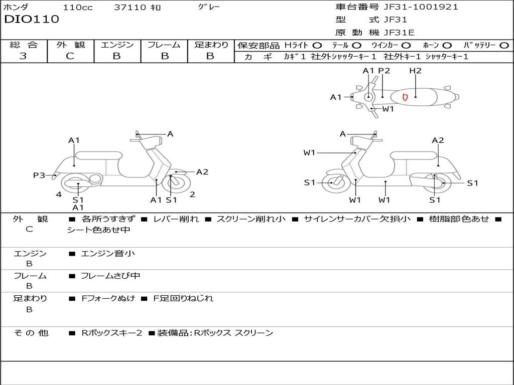 | Номер рамы / VIN | JF31-1001921 |