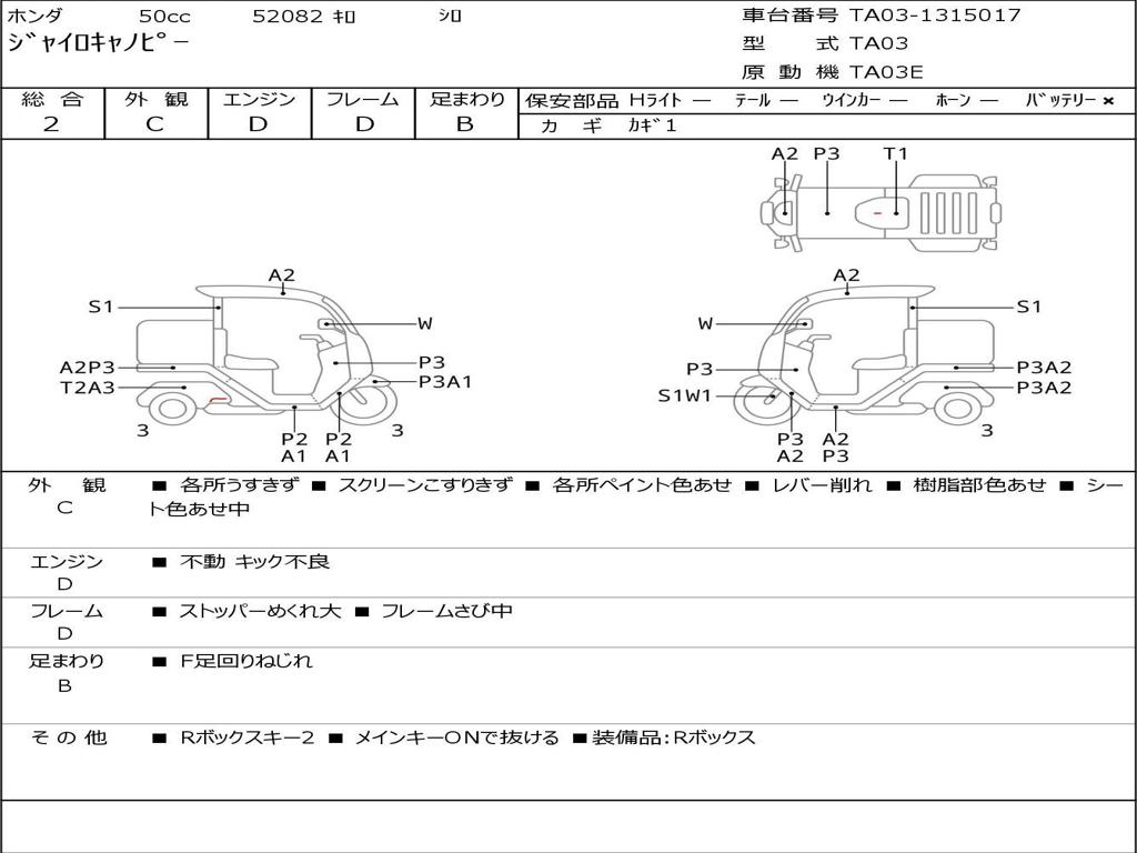 | Номер рамы / VIN | TA03-1315017 |