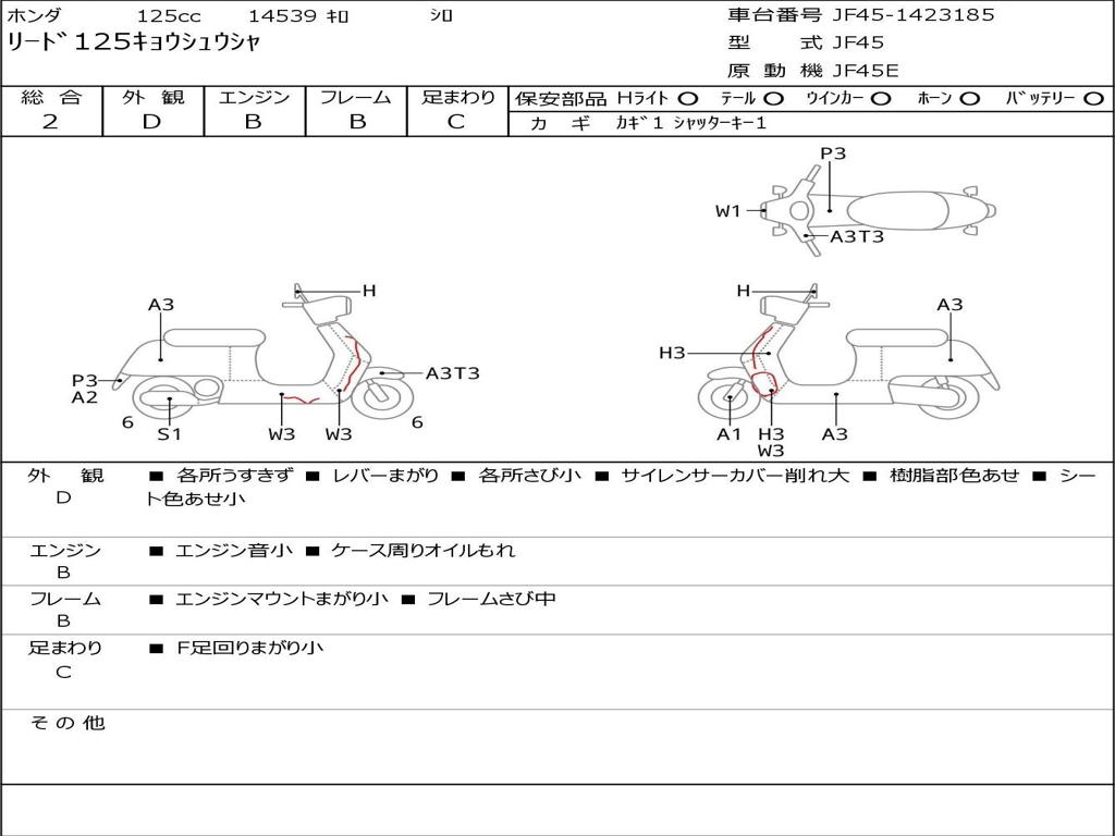 | Номер рамы / VIN | JF45-1423185 |