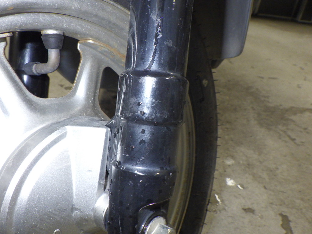 | внешняя часть вилки | царапины <много>, следы коррозии, уровень шума |