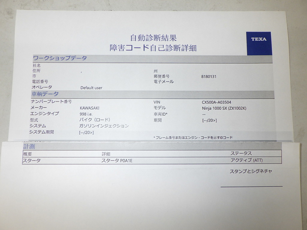 | Номер рамы / VIN | CX500A-A03504 |