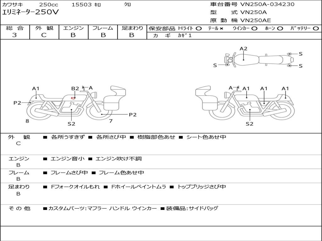 | Номер рамы / VIN | VN250A-034230 |