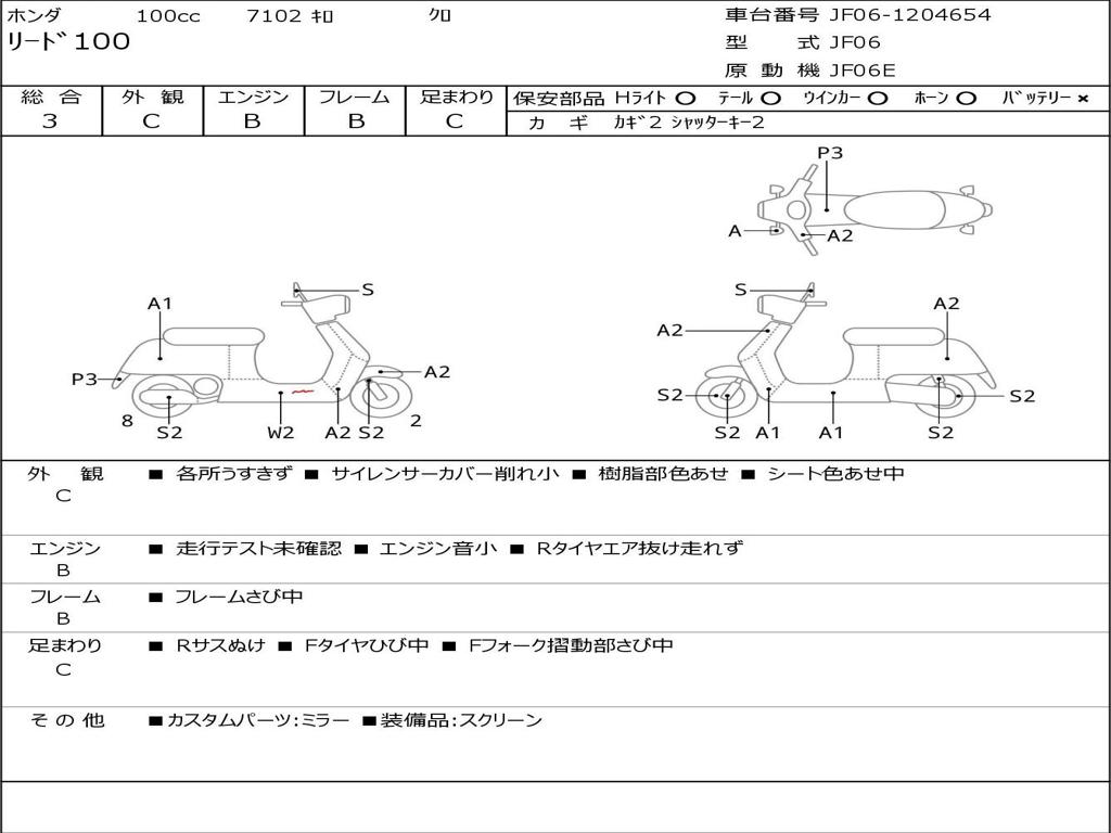 | Номер рамы / VIN | JF06-1204654 |