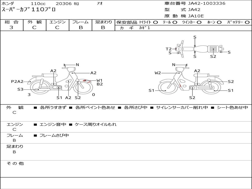 | Номер рамы / VIN | JA42-1003336 |