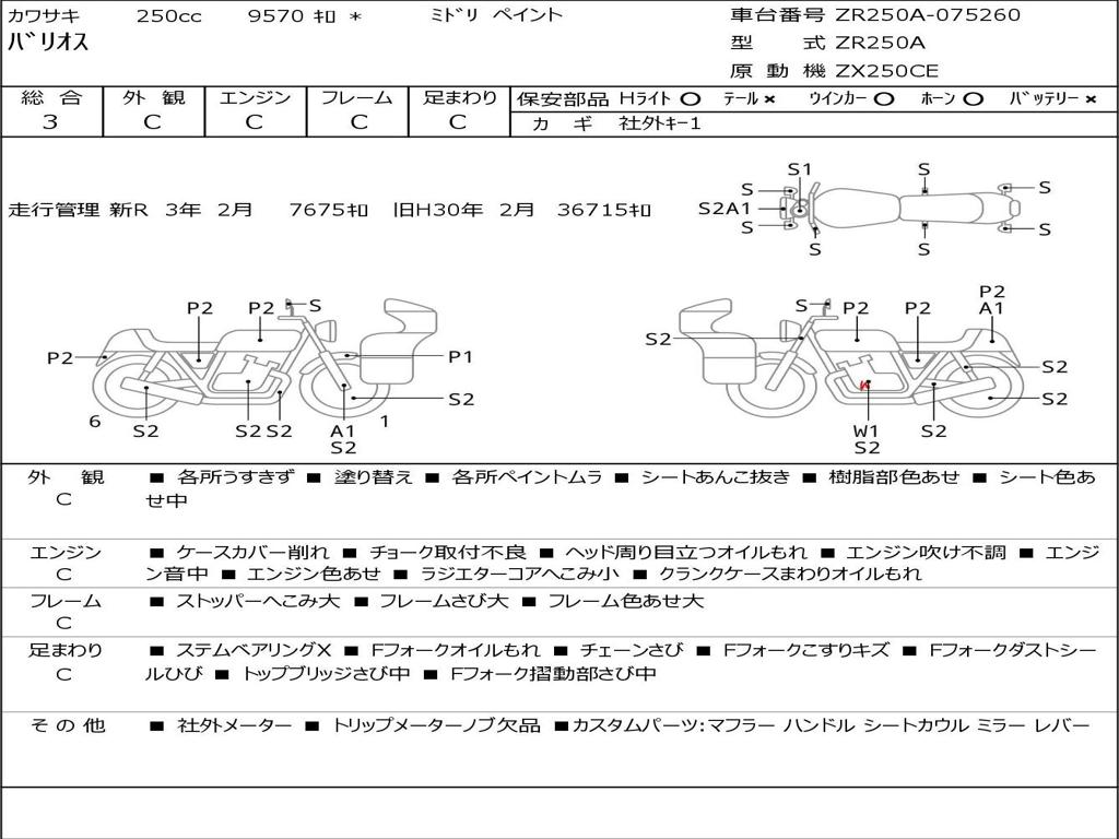 | Номер рамы / VIN | ZR250A-075260 |