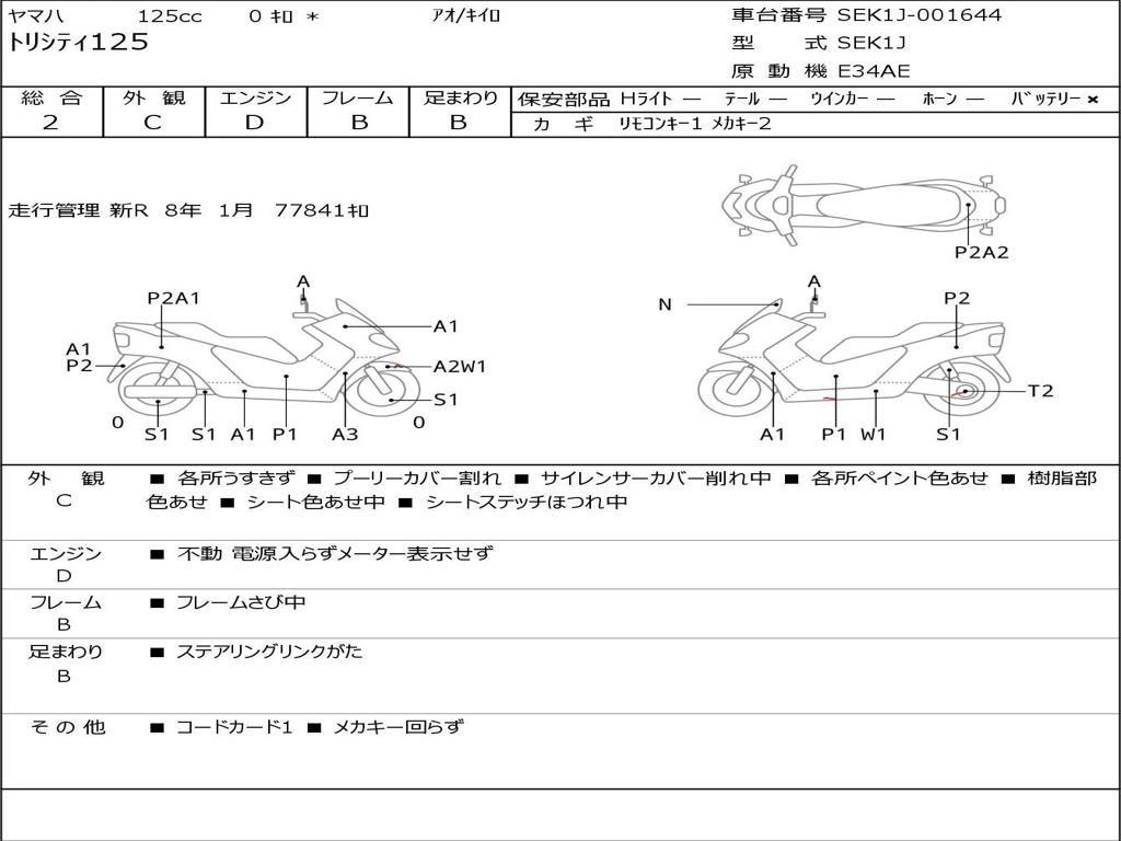 | Номер рамы / VIN | SEK1J-001644 |