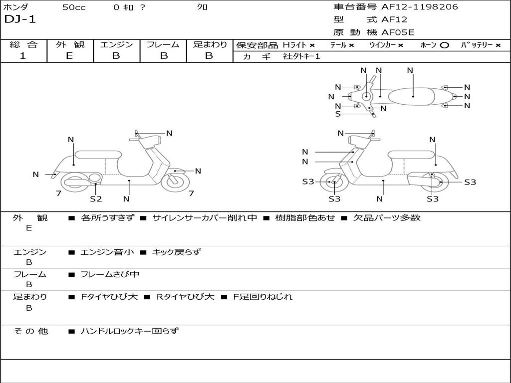| Номер рамы / VIN | AF12-1198206 |
