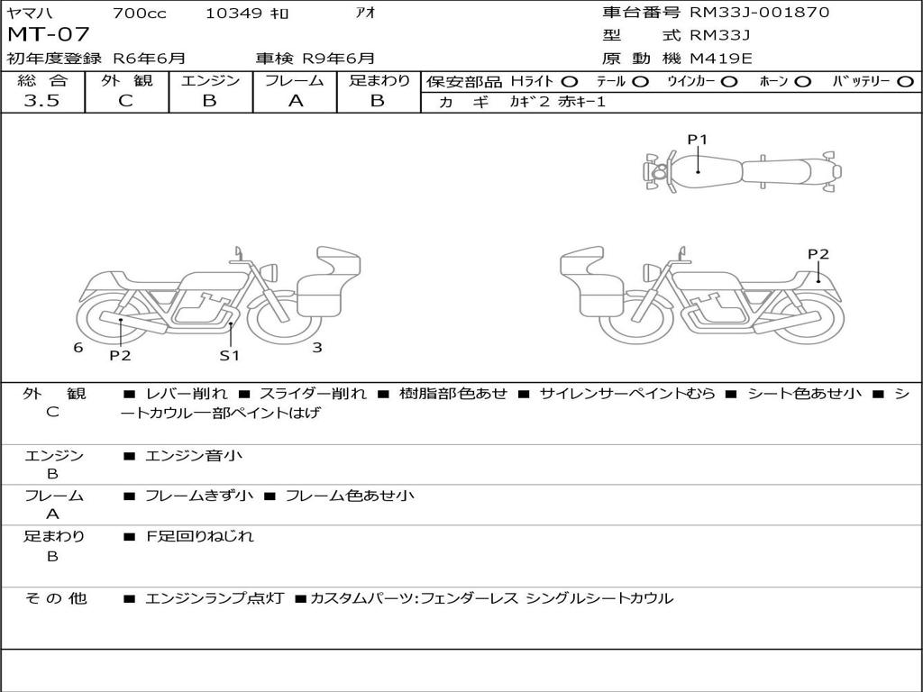 | Номер рамы / VIN | RM33J-001870 |