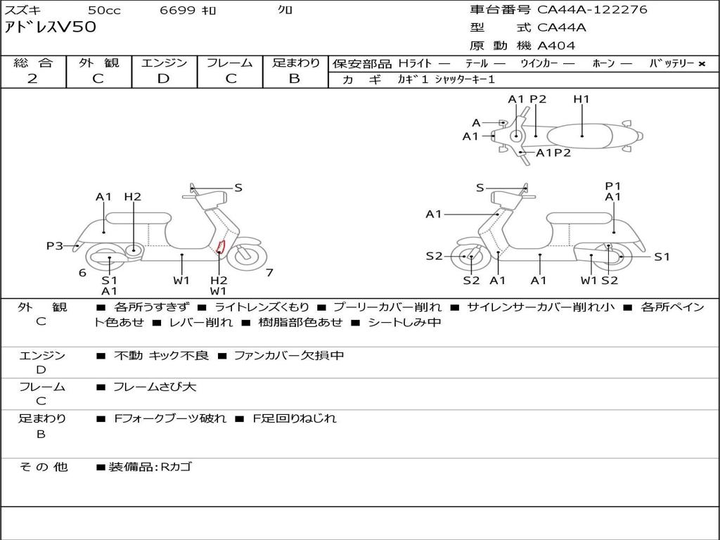 | Номер рамы / VIN | CA44A-122276 |