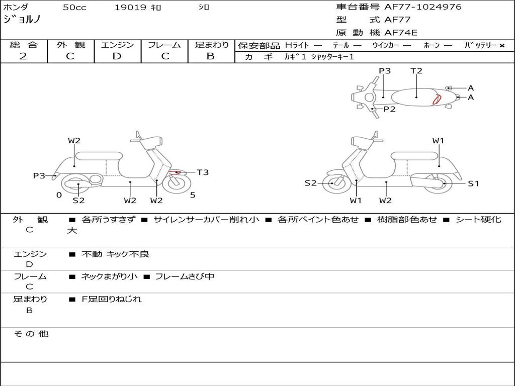 | Номер рамы / VIN | AF77-1024976 |