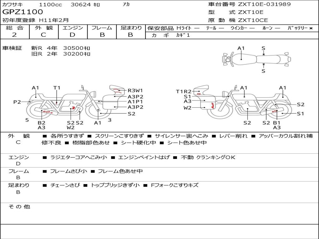 | Номер рамы / VIN | ZXT10E-031989 |