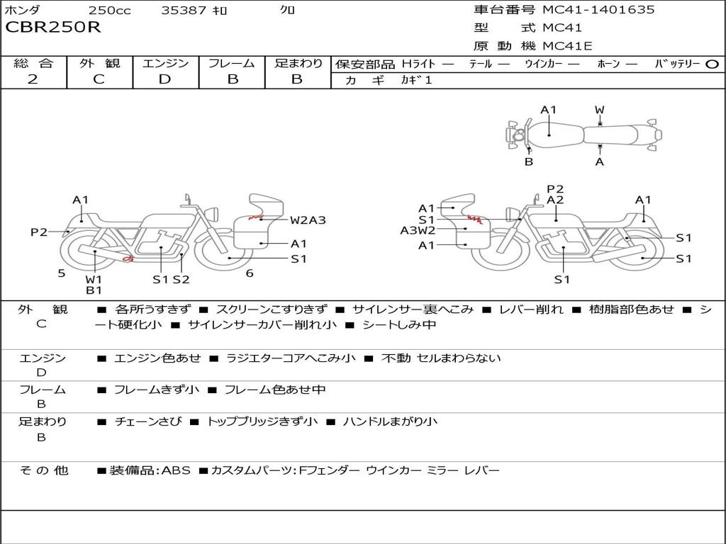 | Номер рамы / VIN | MC41-1401635 |