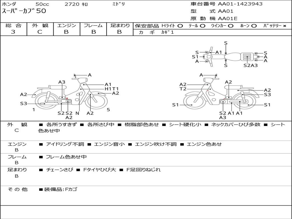 | Номер рамы / VIN | AA01-1423943 |