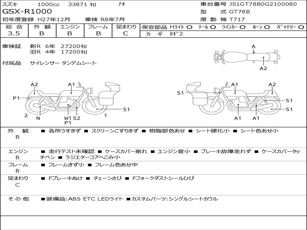 | Номер рамы / VIN | JS1GT78B0G2100080 |