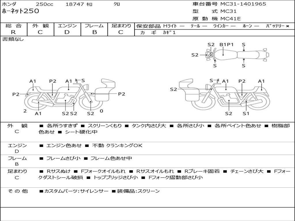 | Номер рамы / VIN | MC31-1401965 |
