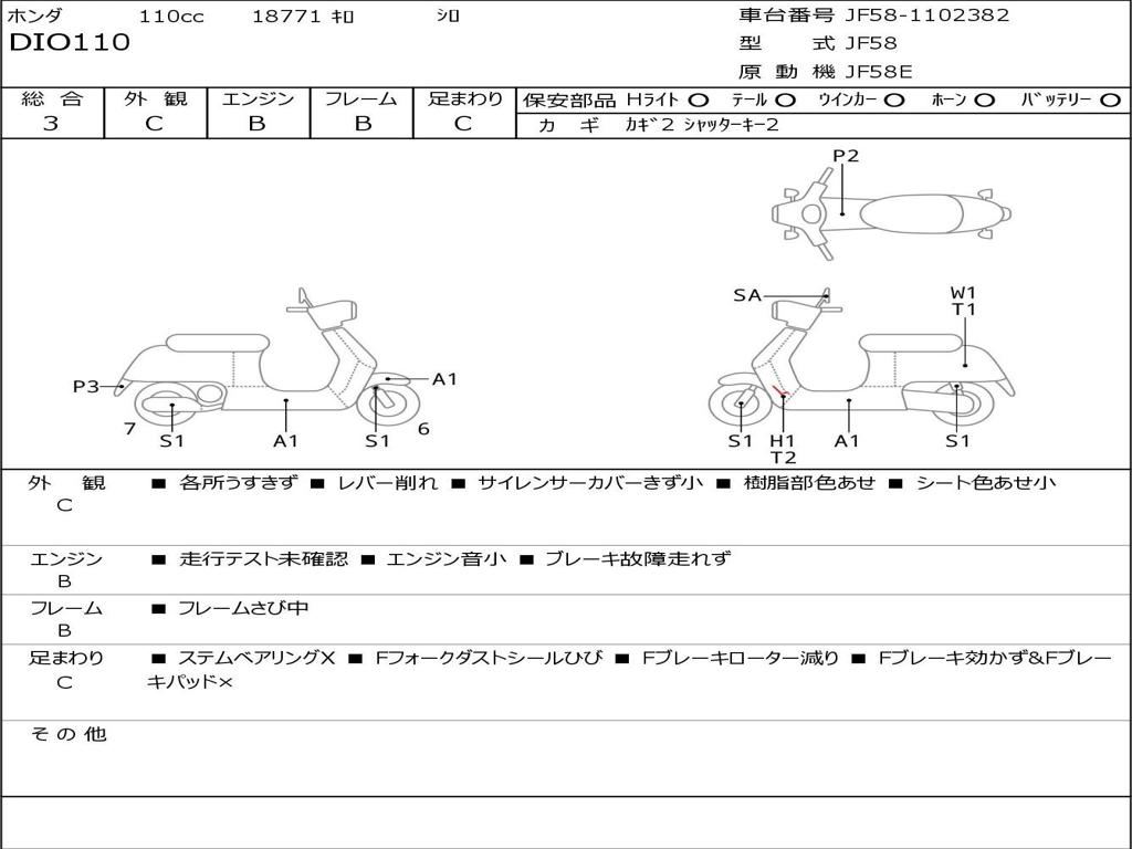 | Номер рамы / VIN | JF58-1102382 |