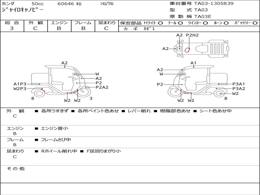 | Номер рамы / VIN | TA03-1305839 |