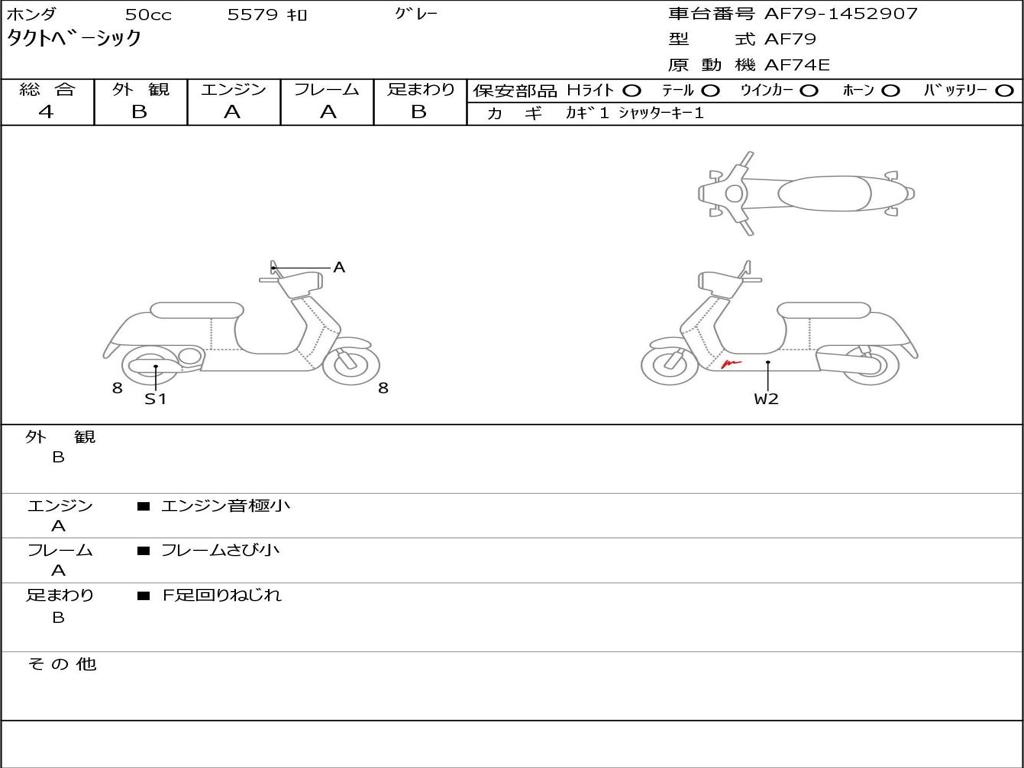 | Номер рамы / VIN | AF79-1452907 |