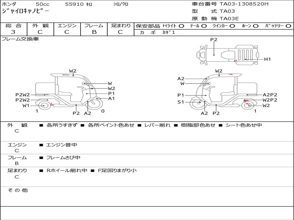 | Номер рамы / VIN | TA03-1308520H |