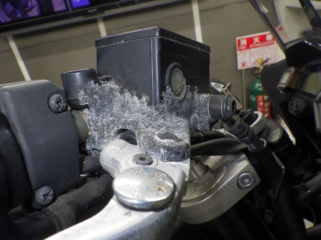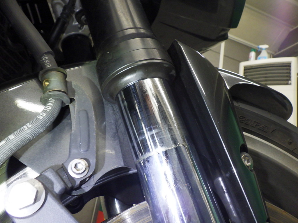 | внешняя часть вилки | следы коррозии, потек масла <много>, неисправен сальник |