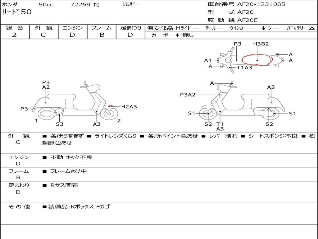 | Номер рамы / VIN | AF20-1231085 |