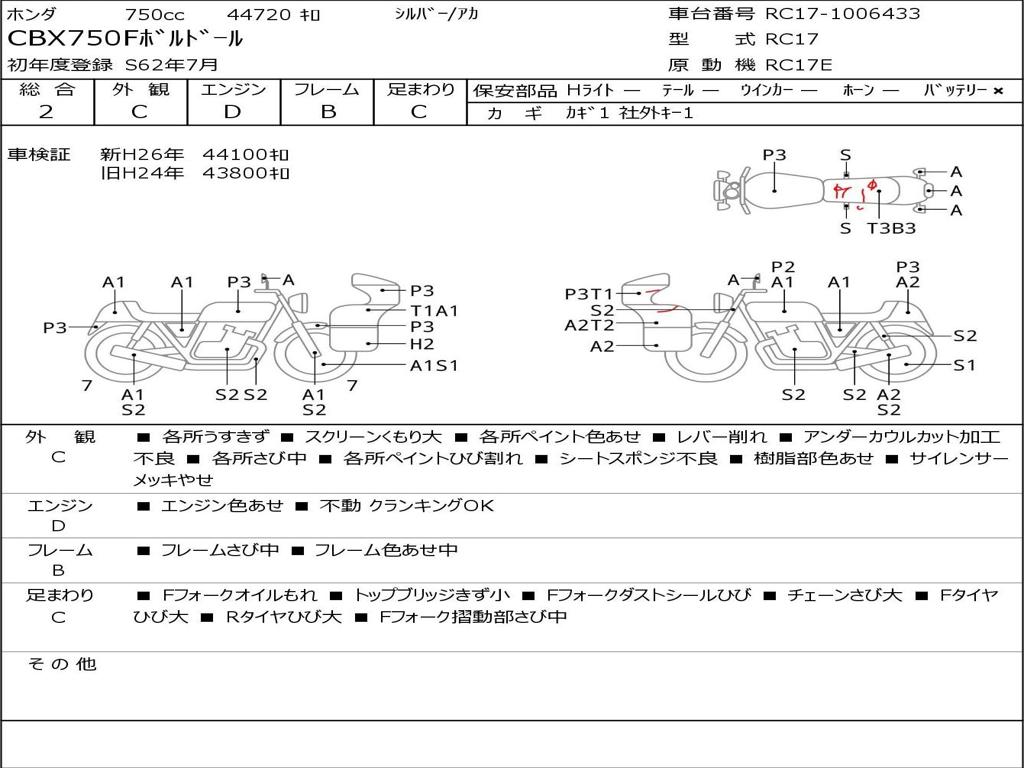 | Номер рамы / VIN | RC17-1006433 |