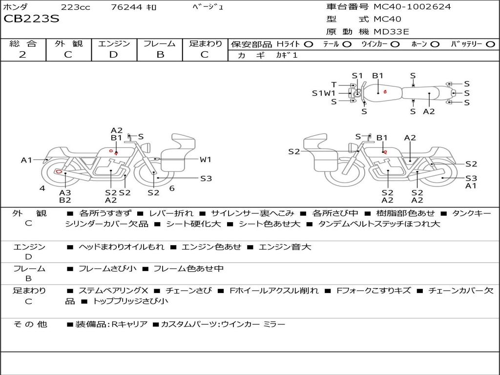 | Номер рамы / VIN | MC40-1002624 |