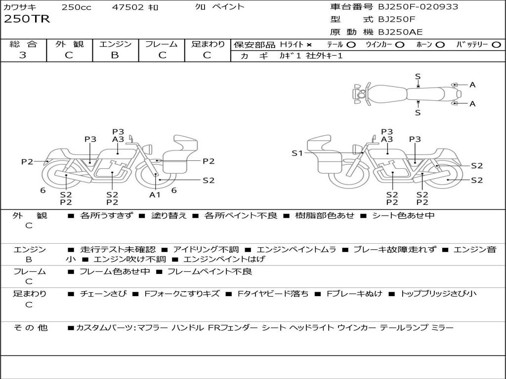 | Номер рамы / VIN | BJ250F-020933 |