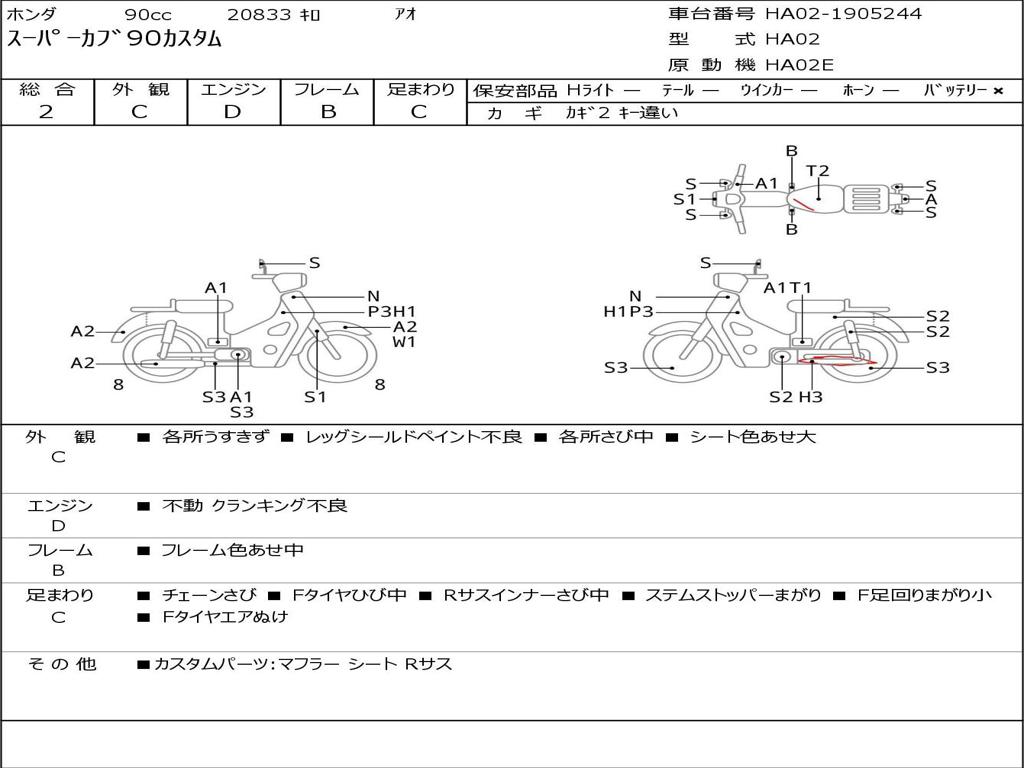 | Номер рамы / VIN | HA02-1905244 |