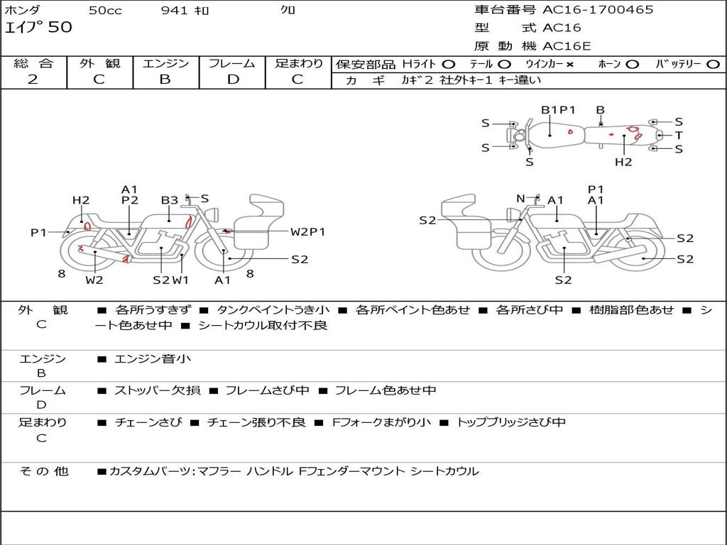 | Номер рамы / VIN | AC16-1700465 |