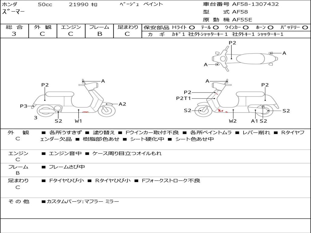 | Номер рамы / VIN | AF58-1307432 |