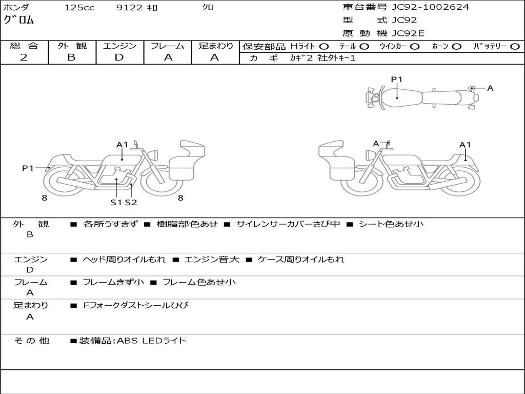 | Номер рамы / VIN | JC92-1002624 |