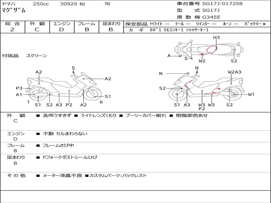 | Номер рамы / VIN | SG17J-017258 |