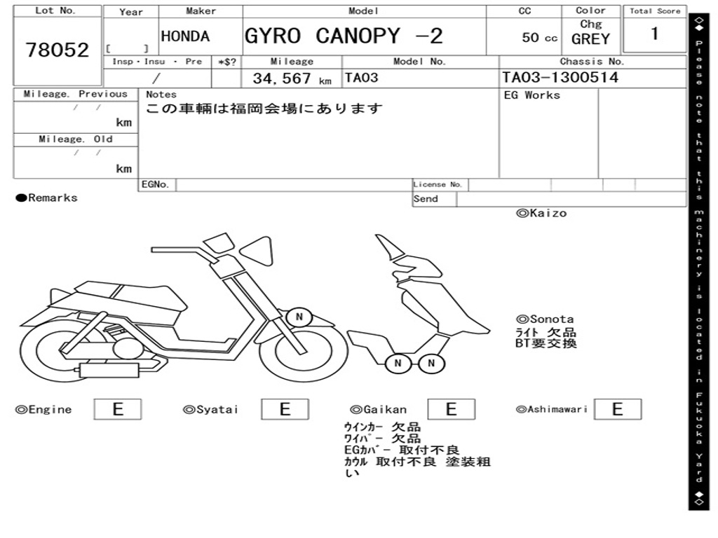 | Номер рамы / VIN | TA03-1300514 |