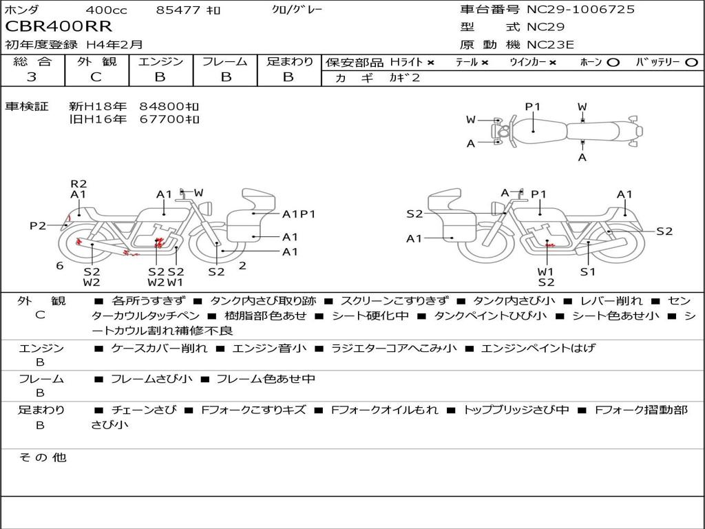 | Номер рамы / VIN | NC29-1006725 |