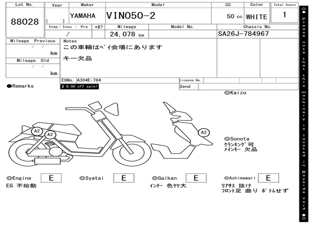 | Номер рамы / VIN | SA26J-784967 |
