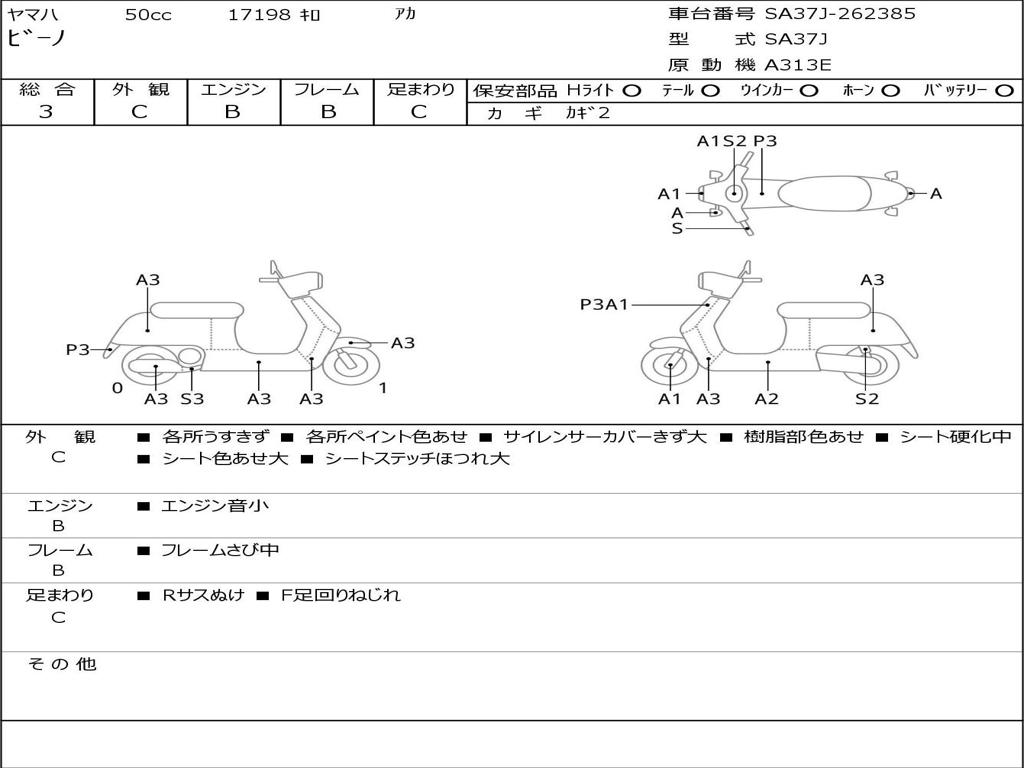 | Номер рамы / VIN | SA37J-262385 |