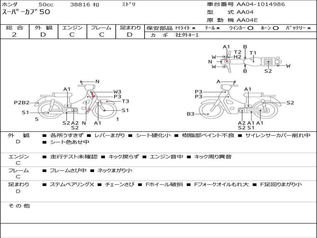 | Номер рамы / VIN | AA04-1014986 |