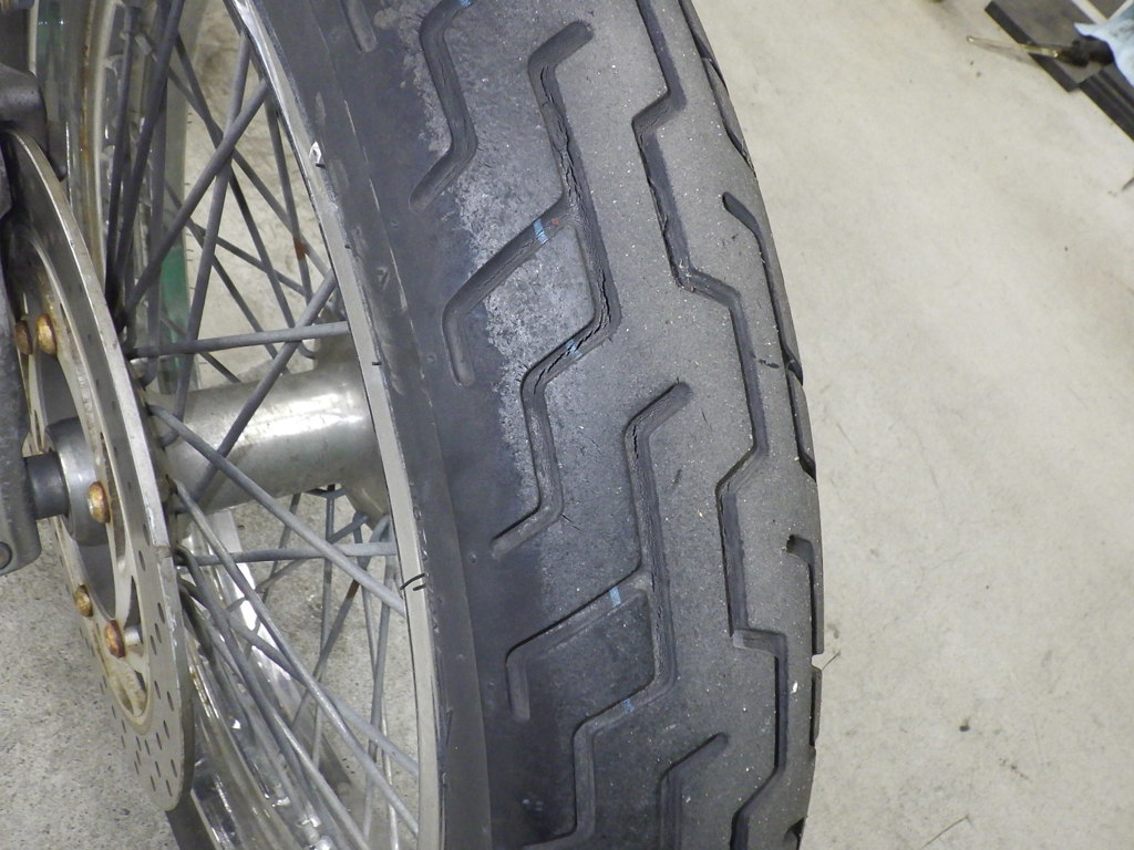 | шина | трещины, требует замены |