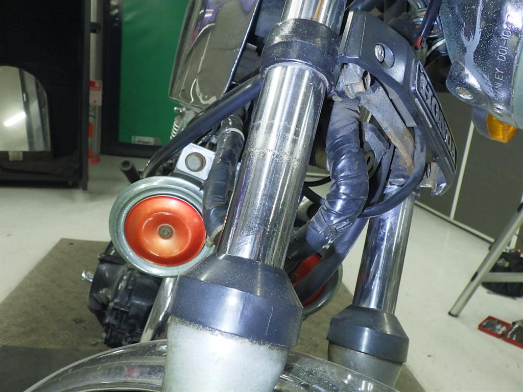 | внешняя часть вилки | царапины, следы коррозии <много>, полирован., потек масла <много>, слабый |