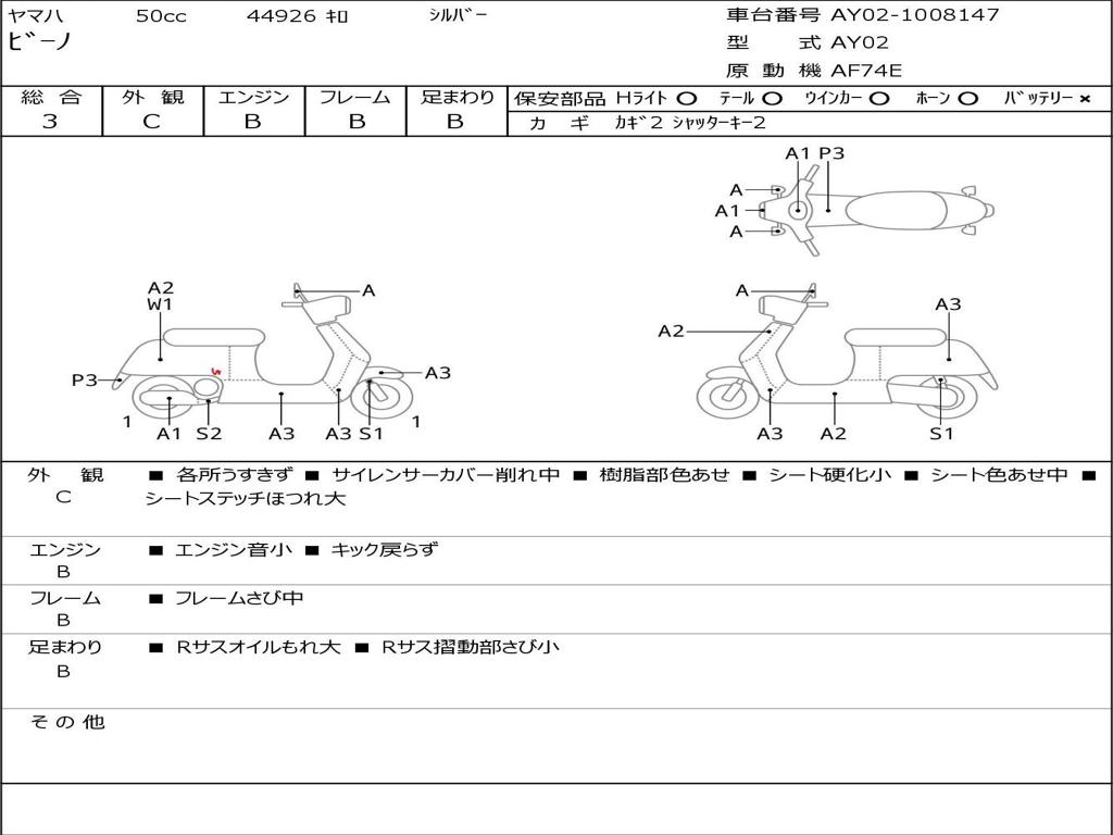 | Номер рамы / VIN | AY02-1008147 |